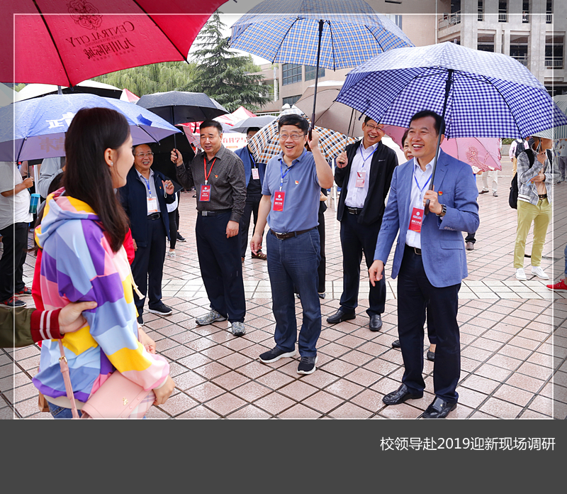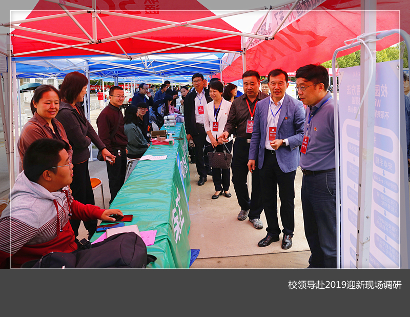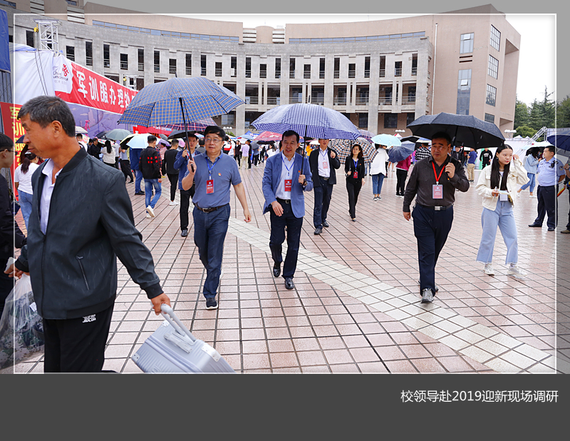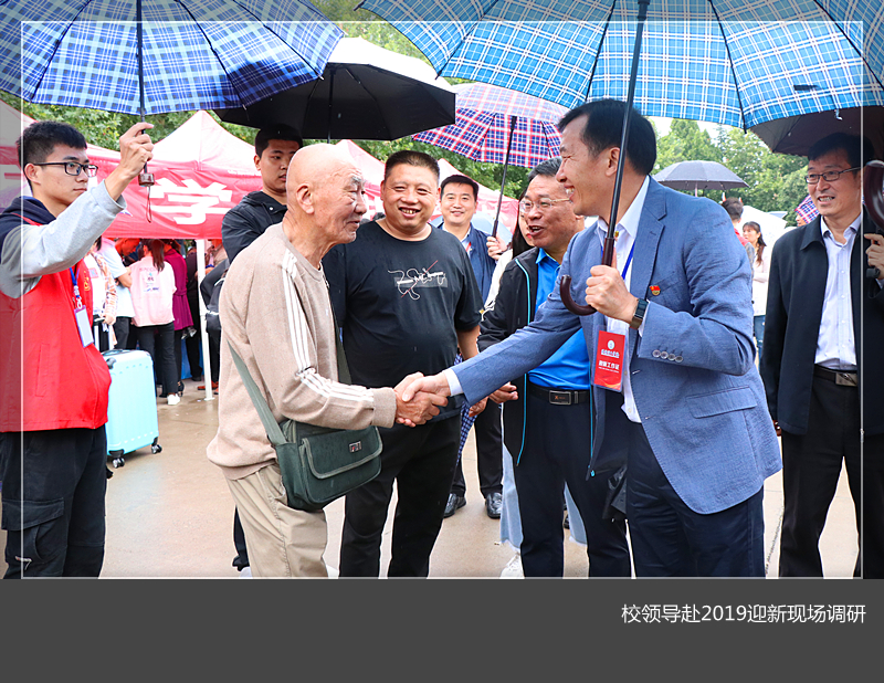 2019级新生报到第一天。上午9点30分,校领导陈岩、刘国际、葛玻、王晓峰、丁梧秀、曾涛一行先后来到王城校区、开元校区、九都校区调研迎新工作情况。