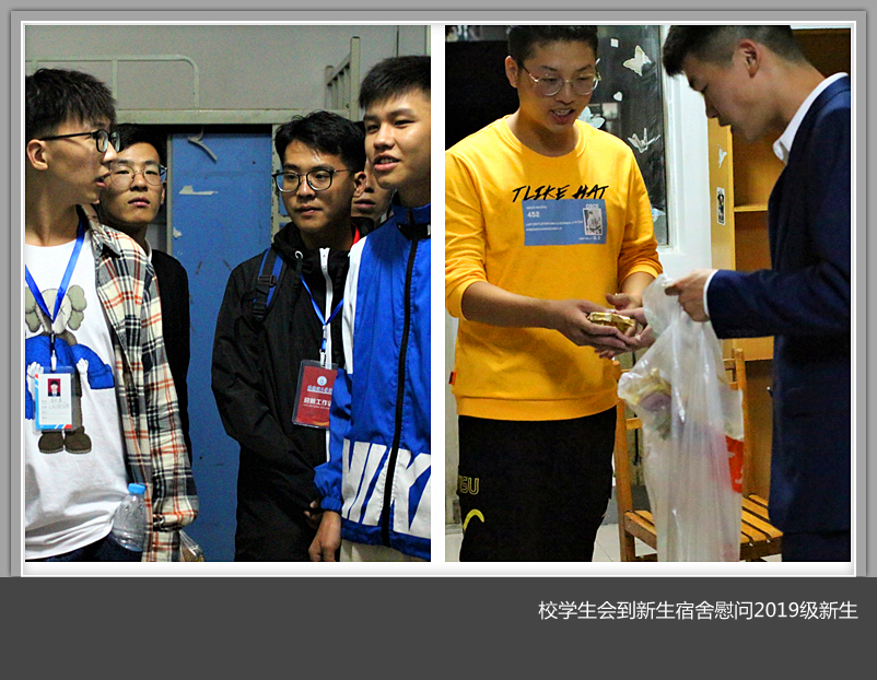 晚7时许,校学生会主要负责人分别到王城、开元校区的铭园、琇园等学生宿舍走访慰问2019级新生,校学生会的同学们为新生送去了月饼、贺卡,与新生深入交流并代表全校所有的老生向2019级的新同学的到来表示热烈的欢迎。