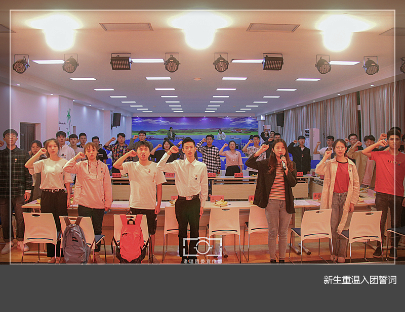 的宣传片,来自不同省份的同学分别作了自我介绍并对接下来的大学生活进行了展望。校团委老师为新生代表佩戴了团徽和校徽,全体在场同学重温了入团誓词。