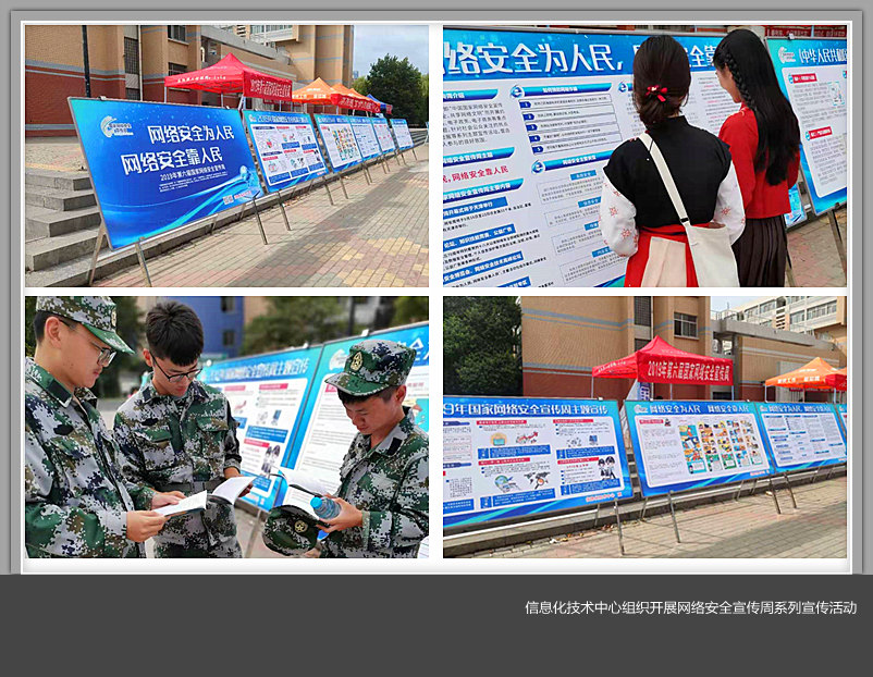 信息化技术中心以“网络安全为人民,网络安全靠人民”为主题,开展网络安全教育宣传活动,在三校区展出系列展板,从“网络安全周缩影”,“网络安全‘习语’”,“网络安全典型案例”,“网络诈骗风险防范”以及“网络安全法解读”五个部分,向全校师生宣传、普及网络安全有关知识和风险防范技能。同时还印制了《网络安全知识手册》,在展示现场免费向师生们发放。同学们纷纷驻足观看展板,传阅安全手册,并不时向信息中心的老师们提问咨询,表现出对了解、学习网络安全知识的浓厚兴趣。为期一周的宣传活动在全校范围内营造出网络安全“人人有责、人人参与”的良好氛围,进一步提升了广大师生的网络安全意识及风险防范水平。