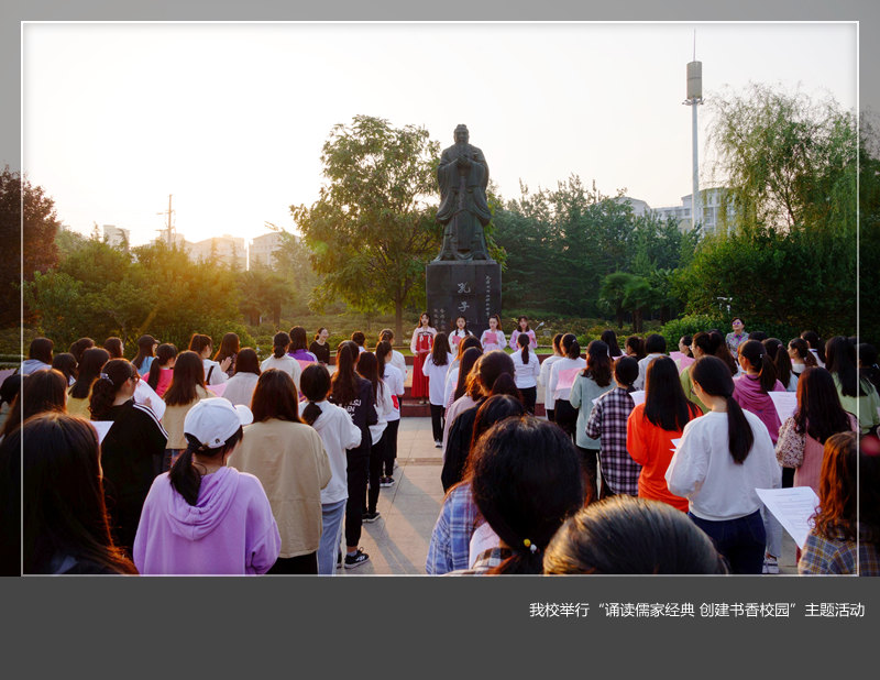 在开元校区文萃园孔子像前开展了“诵读儒家经典、创建书香校园”主题活动,以此来纪念我国伟大思想家、教育家孔子诞辰2570周年。