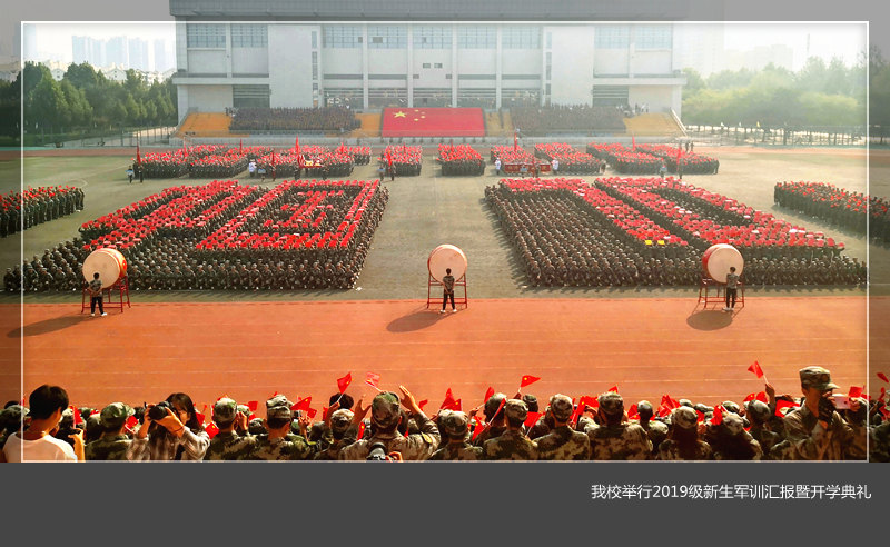 上午8时30分,大会在雄壮的中华人民共和国国歌的嘹亮歌声中开始。校长刘国际检阅了参加军训的全体2019级新生,20个阅兵方队以饱满的精神状态接受检阅,响亮的口号展现了青年大学生的蓬勃朝气。