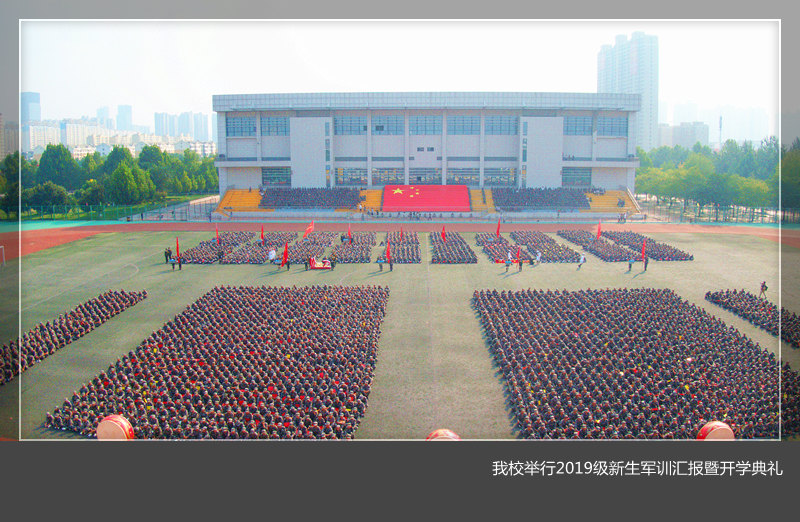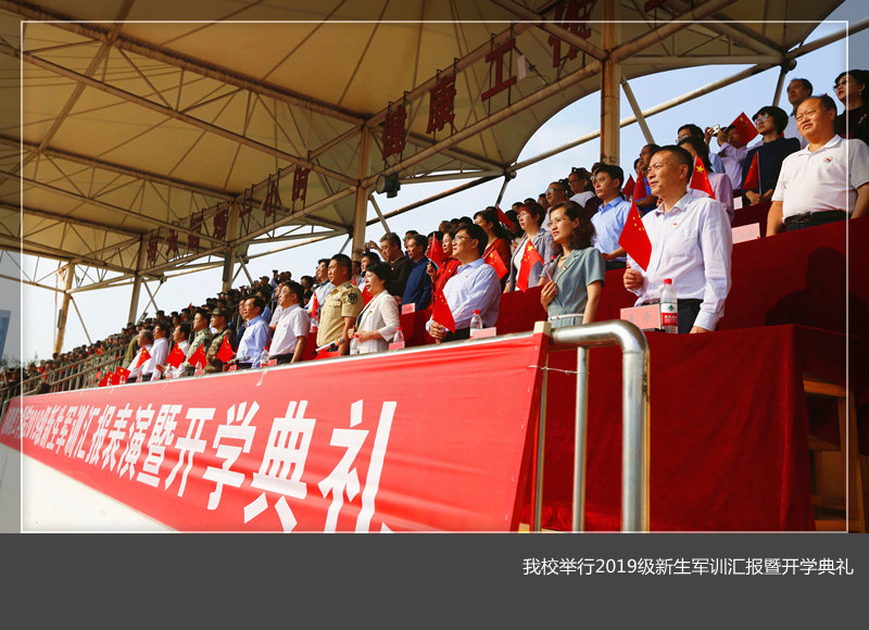 2019级新生军训汇报暨开学典礼在王城校区东体育场举行。军训承训部队领导畅世伟、王忠燕、刘志荣和美高梅娱乐场