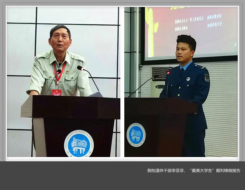 9月27日,市关工委在河南科技大学举行“传承红色基因,争做时代新人”首场报告会。李亚非报告的题目是《搭建高校平台,传承红色基因》,戴利锦报告的题目是《矢志报国绽青春,疾风劲草炼男儿》。他们联系自身经历,语言朴实,生动感人,报告会现场掌声不断,反响强烈。洛阳市关工委执行主任高凌芝、关工委副主任陈风辉及河南科技大学、洛阳市教育局、洛阳市文明办、洛阳市关工委爱国主义教育团等单位领导出席报告会,河南科技大学300多名研究生参加报告会。