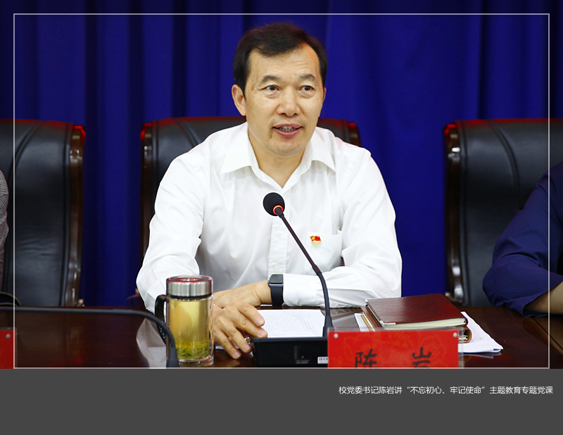 9月30日上午,校党委书记陈岩同志以《以高质量思政工作为引领,落实“立德树人”的使命担当》为题,在王城校区办公楼116会议室讲了一场“不忘初心、牢记使命”主题教育专题党课。专题党课由校党委副书记、校长刘国际主持,校领导、党群部门负责人、各二级党组织书记参加。省委第十三巡回指导组成员省政府研究室综合处调研员、机关党委副书记张治胜同志和省教育厅高等教育处副调研员张俊丽同志出席。