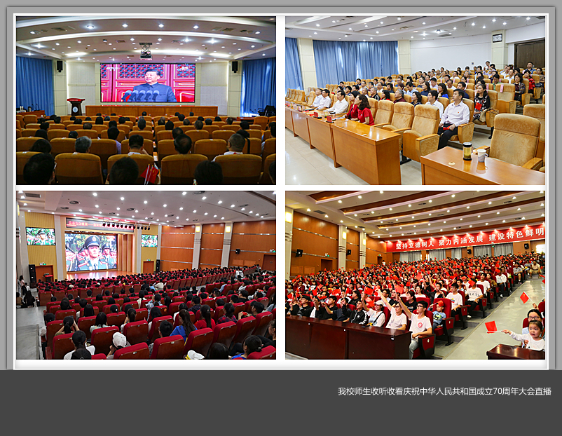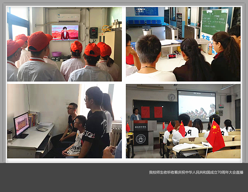 广大师生看完直播后一致认为,祖国的70年,是艰苦奋斗、风雨砥砺、波澜壮阔的70年,是持续发展、披荆斩棘、不断超越的70年,能够生活在这样一个伟大的祖国是值得自豪、值得骄傲的幸事!他们纷纷祝福伟大祖国更加繁荣昌盛,表示将不忘初心、牢记使命,努力拼搏、砥砺前行,为实现中华民族伟大复兴的中国梦而继续奋斗!