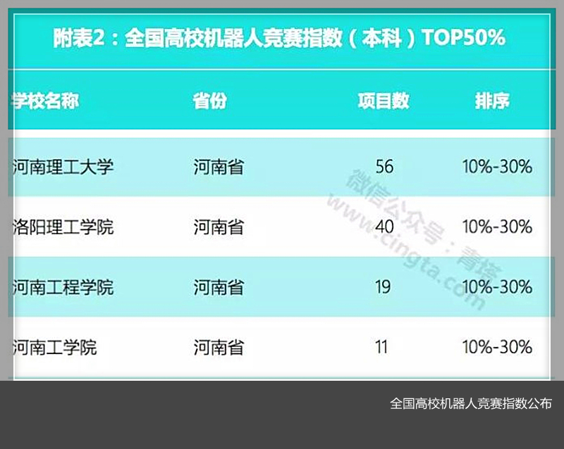 在参加机器人竞赛并获奖的458所本科院校中位列第37位,在河南省高校中位列第2。
