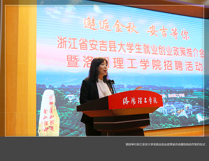 发展概况和近年来示范校建设的成果,表达了与安吉县建立全面人才交流合作的真诚意愿。她指出,作为河南省转型“示范校”高校,校地、校企合作育人在转型发展战略中具有无可替代的重要地位。安吉是习近平总书记“绿水青山就是金山银山”理念的诞生地,不仅具有特殊的政治区位优势,而且在生态建设、经济开发和社会治理等方面均有突出成就,未来发展潜力巨大。安吉县把招才引智当作头等大事,推出一系列大学生就业创业优惠政策,吸引了大批优秀人才涌入安吉。美高梅娱乐场