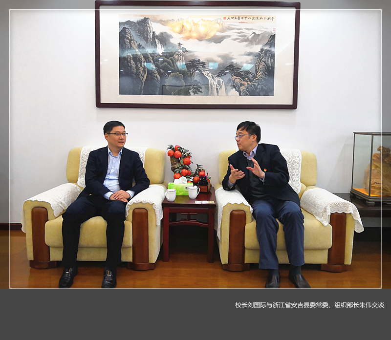 开展校地人才交流合作活动,校长刘国际、校党委副书记葛玻与朱伟等亲切会见。
