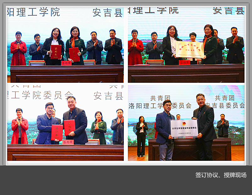 与安吉县人社局签订校地合作协议,并授受“校地人才合作基地”铭牌;安吉县人社局向“安吉县美高梅娱乐场