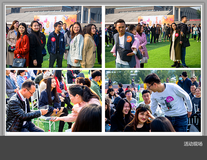 联谊活动以“牵手秋天、幸福相伴”为主题,旨在为各参与单位的单身男女创造展示自我、情牵有缘的机会。联谊活动中设计有多个游戏环节,男女嘉宾们在共同参与游戏的过程中一步步消除陌生感,增进亲和度,期间还穿插有互赠小礼物、心愿卡和玫瑰花等小插曲,进一步帮助有缘人增进了解,敞开心扉;在最后的“抢答”环节中,男女嘉宾相互表白,真情牵手,将活动现场气氛推向高潮。