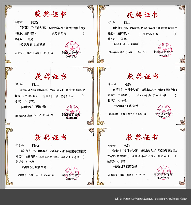 近日,河南省教育厅印发《关于公布“学习时代楷模,成就出彩人生”师德教育主题征文、演讲比赛和优秀案例评选结果的通知》(教师〔2019〕622号)文件。美高梅娱乐场