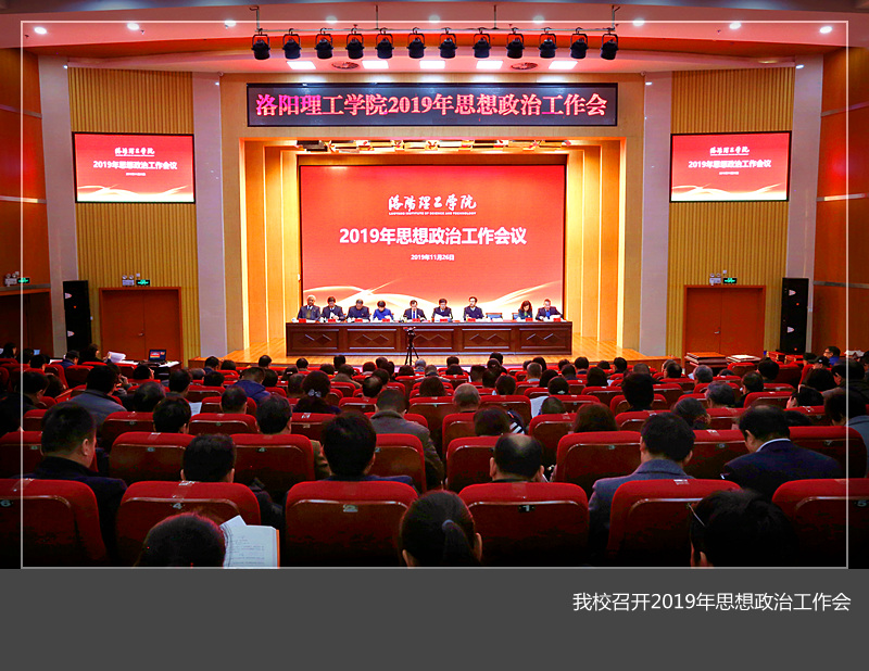 在王城校区图书信息中心报告厅召开2019年思想政治工作会。校领导陈岩、刘国际、葛玻、韩振英、曹国杰、王晓峰、丁梧秀、张文选、曾涛出席大会。会议由校长刘国际主持。全校中层干部、思政课教师、辅导员和部分科级干部、教师代表、学生代表等参加会议。