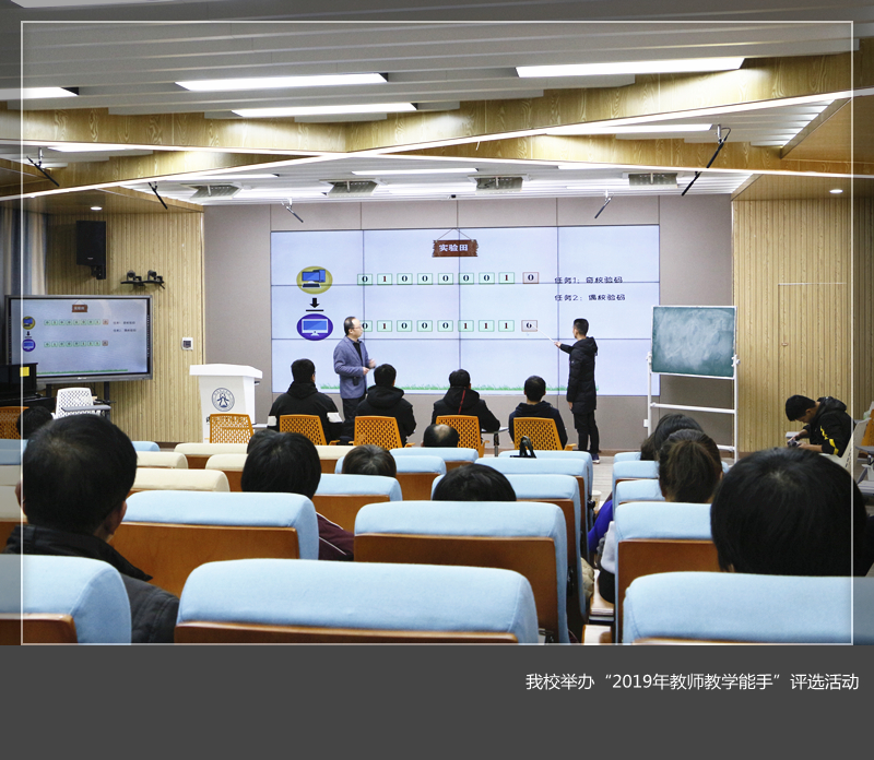 在王城校区公共教学楼AE507智慧教室举办了“2019年教师教学能手”评选活动。本次活动由副校长丁梧秀主持,由教务处、人事处、各院(部)教学副院长、校教学督导团等32位专家组成的评审委员会以及来自各院部的17位选手参加了评选。