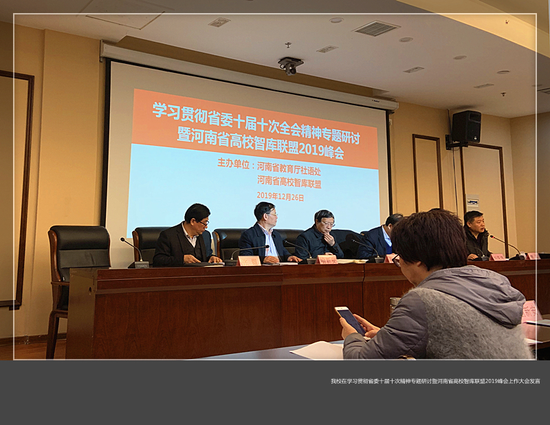 12月26日,河南省教育厅主办的学习贯彻省委十届十次精神专题研讨暨河南省高校智库联盟2019峰会在郑州召开。河南省委高校工委专职委员高治军,河南省教育厅社语处调研员、河南省高校智库联盟政治指导员魏军、杨维纳,河南省高校智库联盟理事长、中国(河南)创新发展研究院院长喻新安,河南省高校智库联盟副理事长、河南农业大学原党委书记程传兴等出席会议。来自郑州大学、河南大学、河南理工大学等15所高校的社科处负责人和30余家智库100位专家学者参加了会议。