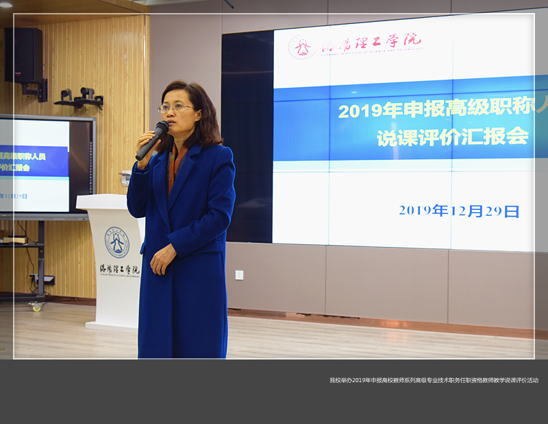 2019年度高校教师系列高级专业技术职务任职资格教师教学课程教学质量认定现场说课评价于12月29-30日在王城校区公共教学楼AE507智慧教室举行。副校长丁梧秀出席,人事处、教务处相关负责人参加,评委由校教学督导团成员和各院部教学副院长(副主任)组成。