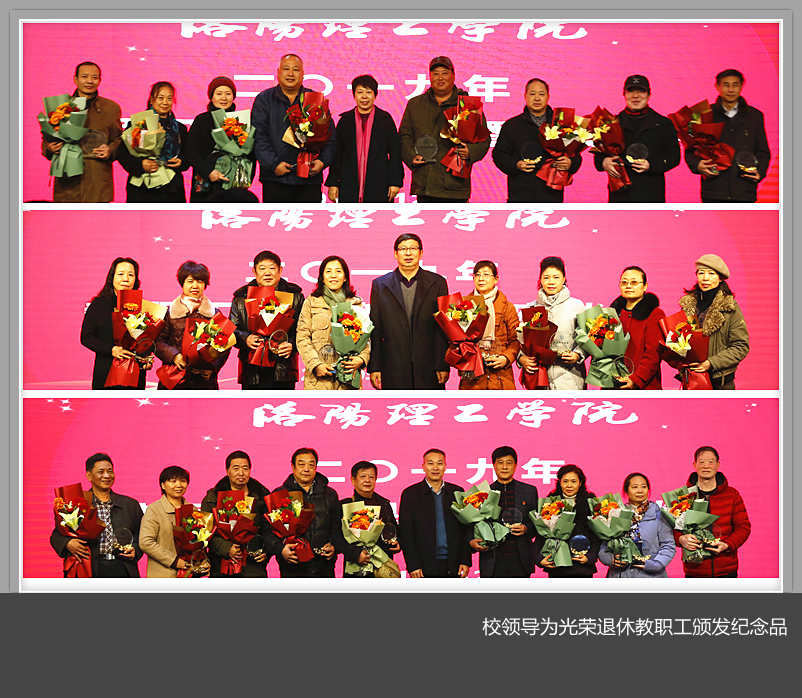 2019年荣退教职工名单”,校领导为光荣退休教职工颁发纪念品,学生为退休教职工献花。随后,环化美高梅娱乐场