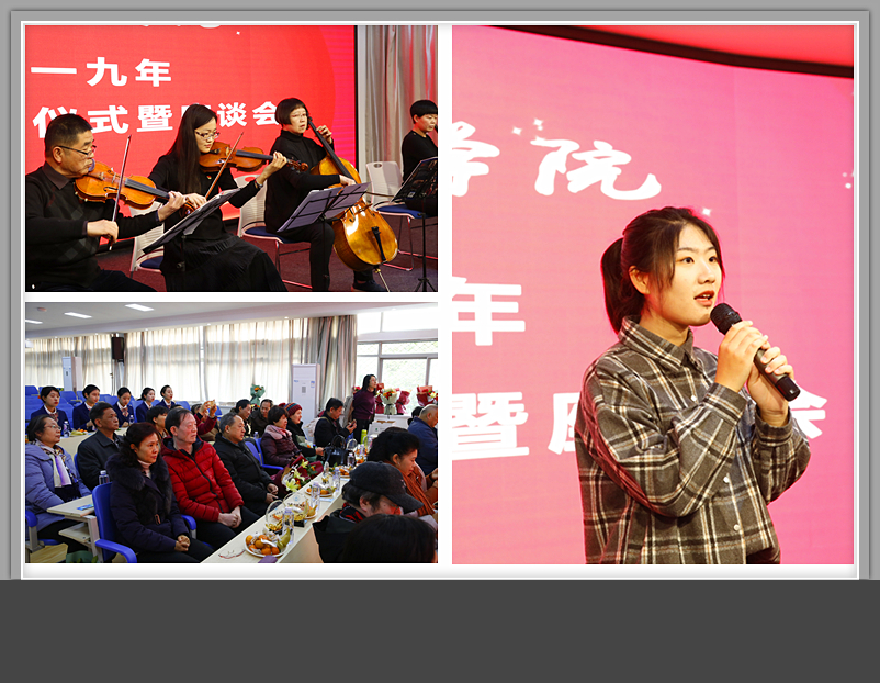 教师黄瑞等进行了弦乐合奏《卡农》、《友谊天长地久》,烘托了温馨、喜悦的气氛。