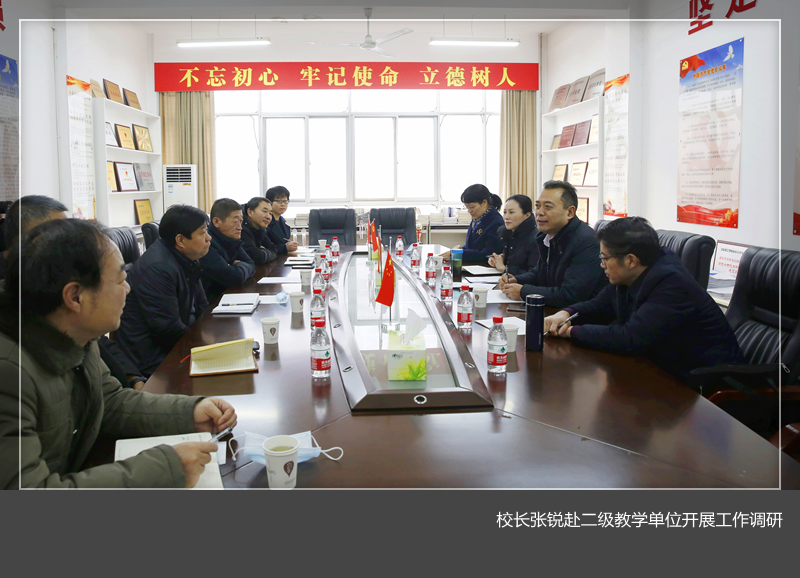 1月23日-25日,校长、校党委副书记张锐,副校长马珺到16个二级教学单位开展工作调研,教务处、科研处、社科处负责人参加调研。