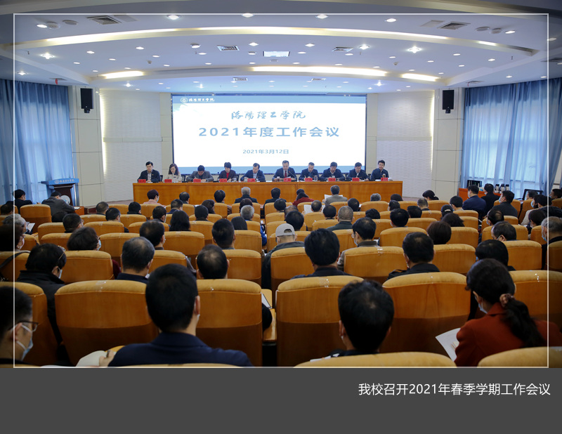 2021年春季学期工作会议在王城校区办公楼二楼报告厅举行。校领导陈岩、张锐、葛玻、曾涛、李大伟、王晓峰、丁梧秀、胡恩立、刘楠、黄志全出席,副处级以上干部参加。会议由党委副书记葛玻主持。