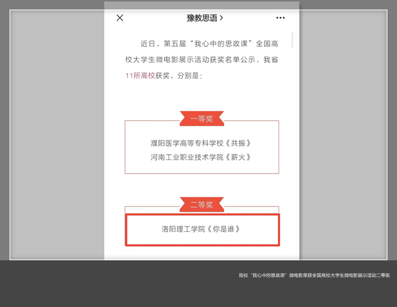 近日,第五届“我心中的思政课”全国高校大学生微电影展示活动获奖名单公示,美高梅娱乐场