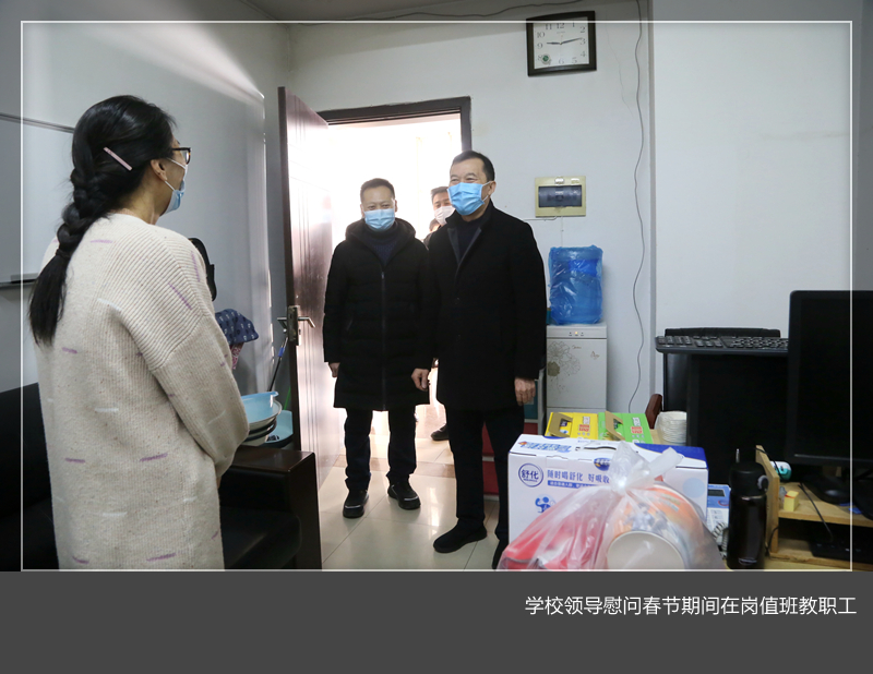 的疫情防控规定,切实筑牢安全防线,为教职工和家属创造一个安全祥和的生活环境。慰问期间,陈岩一行还就寒假期间值班、校园安全、后勤保障服务以及疫情防控等工作提出了具体要求。