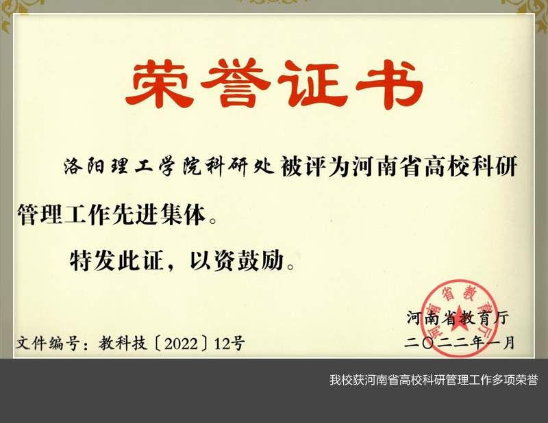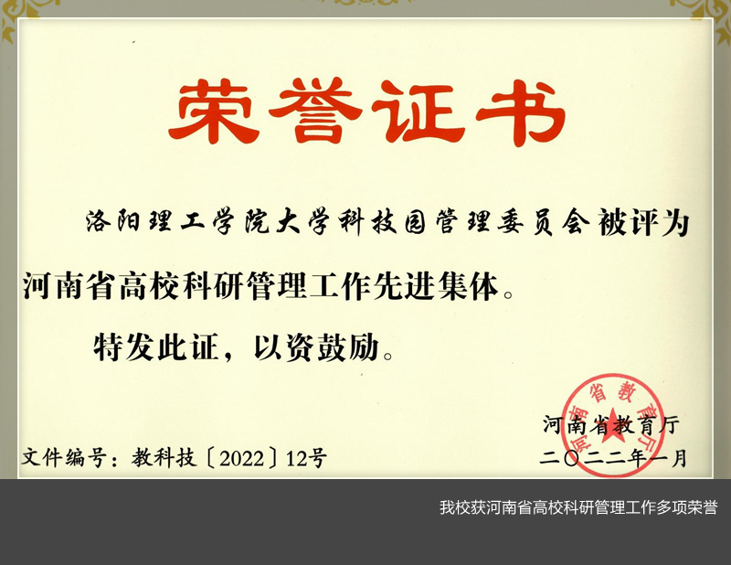 科研处、大学科技园管理委员会“河南省高校科研管理工作先进集体”荣誉称号、授予孙泽宇等6位老师“河南省高校科研管理工作先进工作者”荣誉称号。