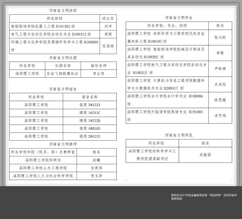 近日,中共河南省委高校工委、河南省教育厅下发《关于公布2021年度全省教育系统“两创两争”活动先进集体和先进个人评选结果的通知》(豫高发[2022]3号),对2021年度全省教育系统精神文明创建活动先进集体和先进个人进行表彰,美高梅娱乐场