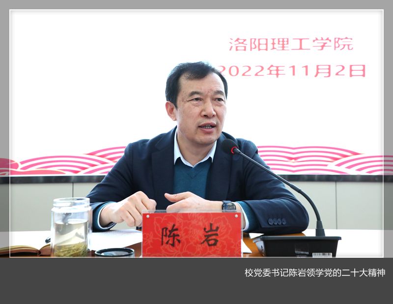 会上,校党委书记陈岩以《深入学习贯彻党的二十大精神 为建设高水平应用型大学注入强劲思想动力》为题作党的二十大精神学习第一讲,分享交流了学深悟透党的二十大报告的关键内容和学习贯彻党的二十大精神的启示与要求。