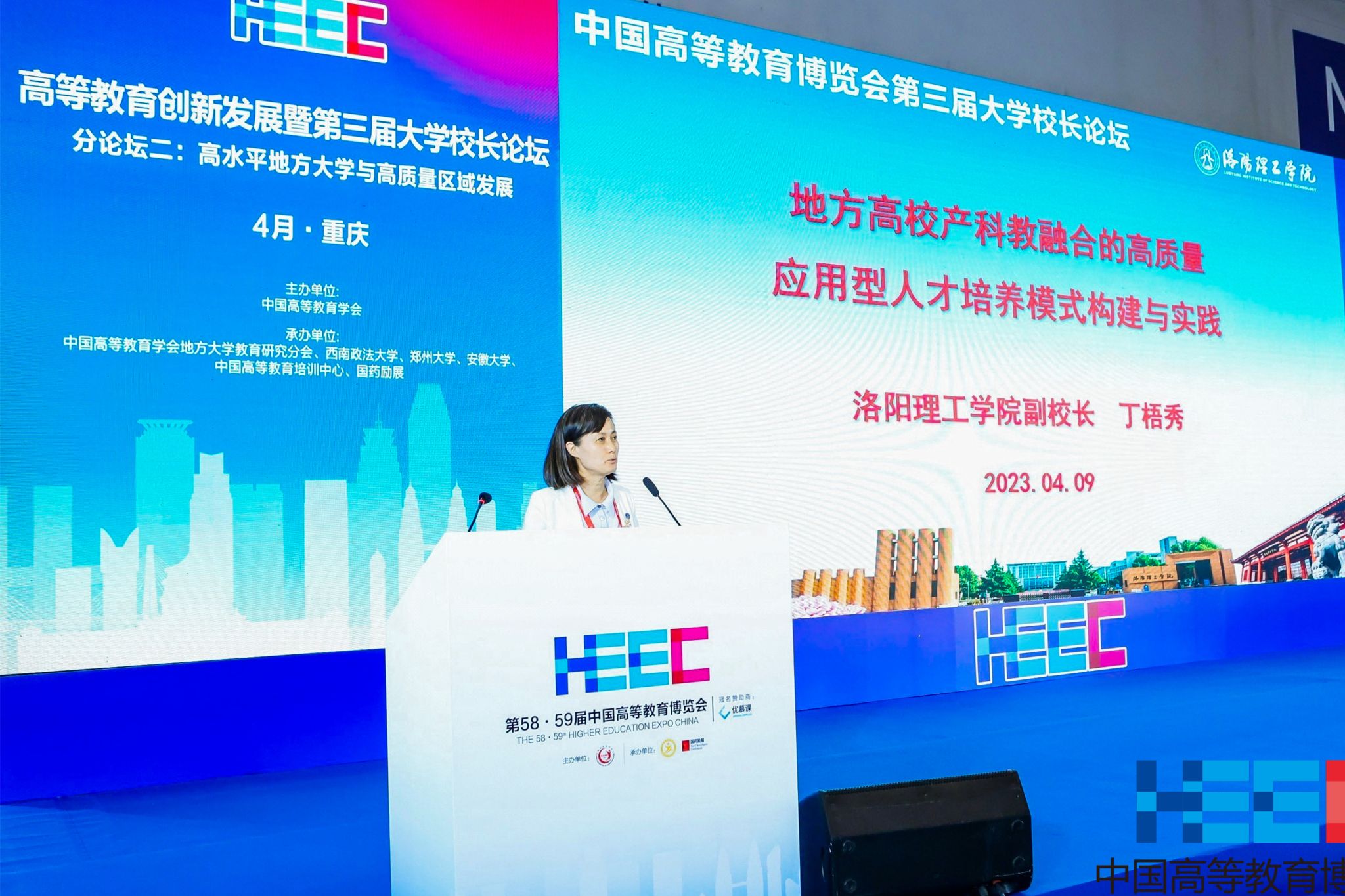 4月9日下午,高等教育创新发展暨第三届大美高梅娱乐场 长论坛在重庆举行,副校长丁梧秀在本届论坛上以《地方高校产科教融合的高质量应用型人才培养模式构建与实践》为题作专题报告,全面介绍了美高梅娱乐场 产科教融合高质量应用型人才培养的成果。