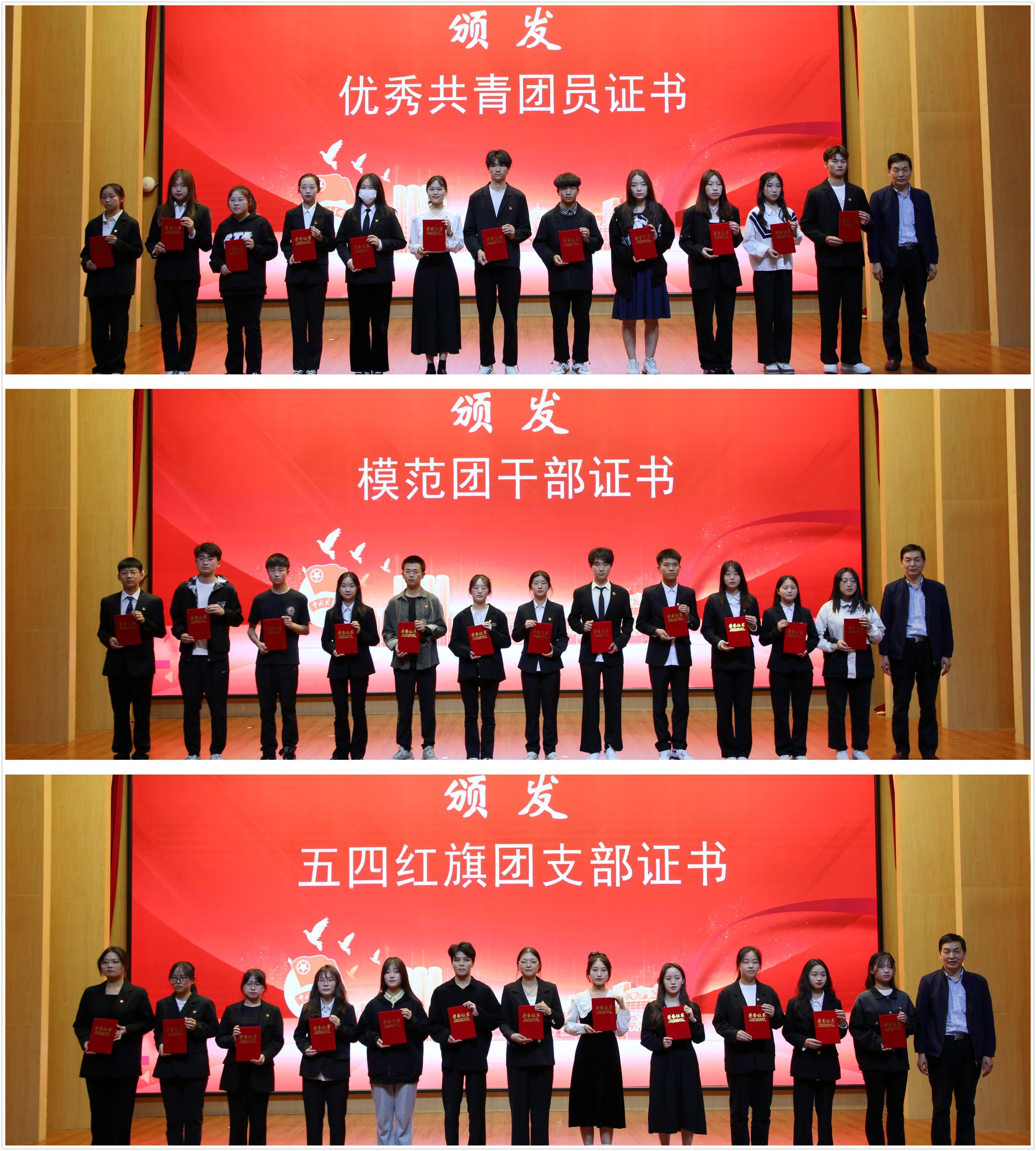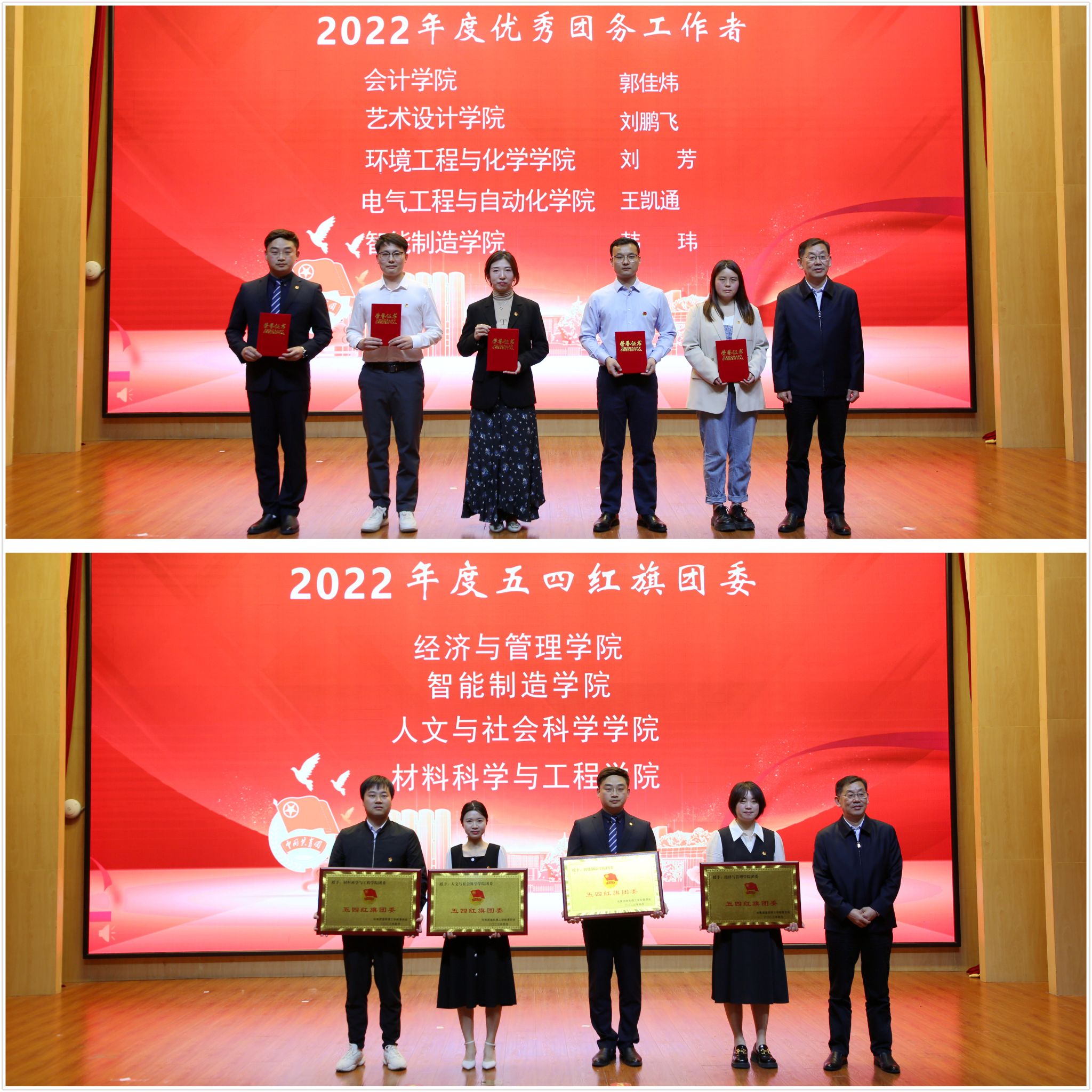 团委荣获“五四红旗团委”称号;郭佳炜、刘鹏飞、刘芳、王凯通、韩玮五名教师荣获“优秀团务工作者”称号。