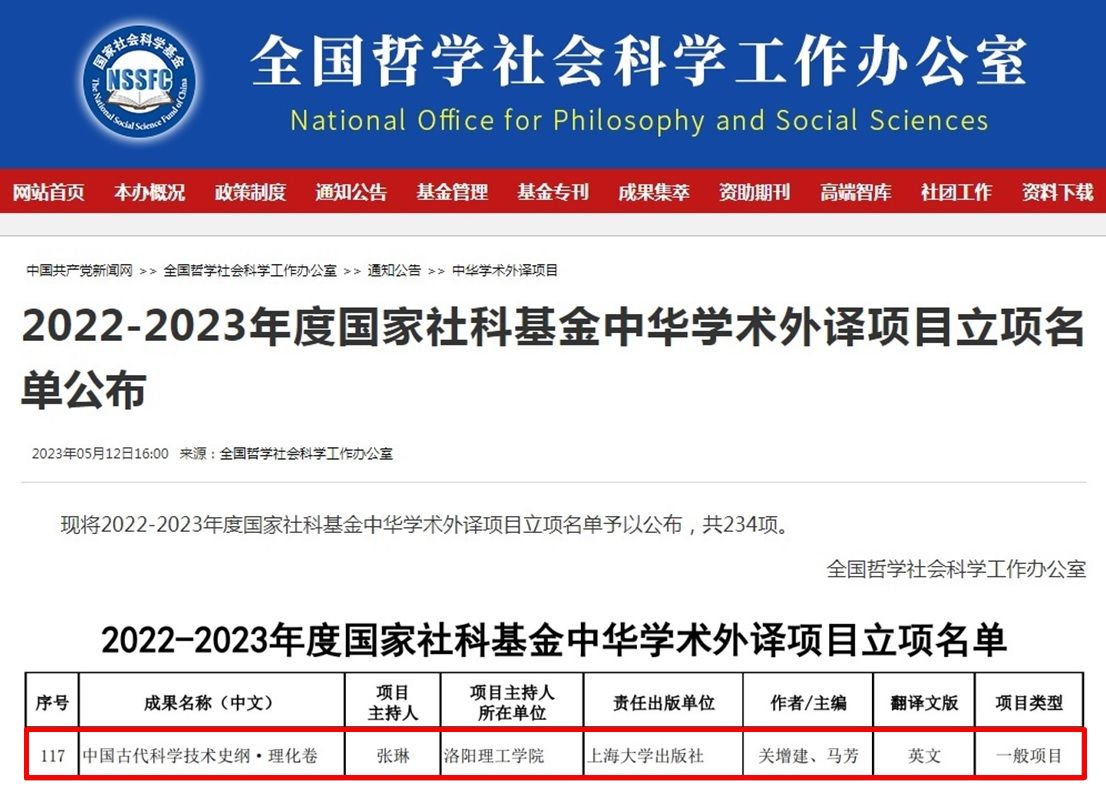 张琳副教授主持申报的《中国古代科学技术史纲·理化卷》英文翻译项目获批立项,这是美高梅娱乐场