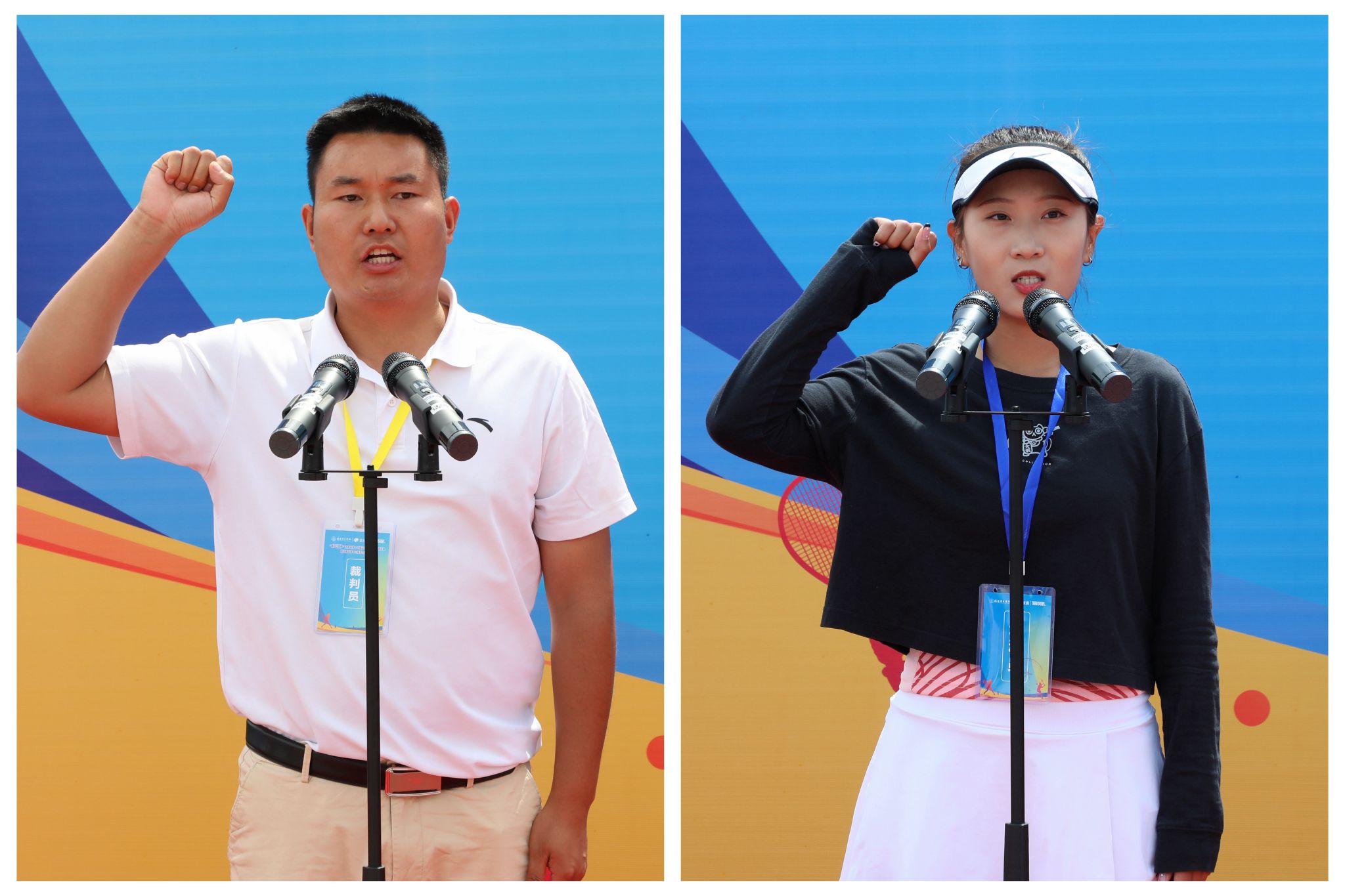裁判员代表(左)和运动员代表(右)分别宣誓