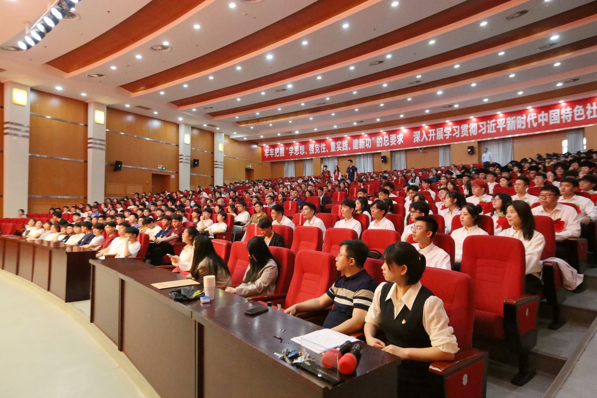 仍需保持热爱学习、刻苦学习的生活习惯,保持对知识的渴望、对未知的好奇,要毫不犹豫确立终身学习的理念,用坚持的学习、永远的学习为自己的人生持续赋能增势。三是要永远保持拼搏奋斗的姿态。青年是整个社会中最积极、最有生气的力量。实现第二个百年奋斗目标,青年一代责任在肩,希望全体毕业生永远树立“云程发轫、放眼星河”的志向,不断发扬“劈波斩浪、一往无前”的精神,同时间赛跑、同时代同行,用奋斗创造奇迹、用奋斗拥抱未来,用奋斗开辟一片更加广阔的天地!四是要永远保持正义勇敢的品格。没有任何东西能够阻挡正义的力量,浩然正气是一个人在为人处世、待人接物过程中立于不败之地的最鲜亮的底色。同学们走上社会,在人生的路上,无论顺境逆境,希望大家不要害怕、不要妥协、不要后退,要勇于坚持自己正确的立场。要始终相信追求真理、崇尚科学、维护正义、勇敢前行的你们,必将在以中国式现代化全面推进中华民族伟大复兴的宏伟征程上汇聚成气吞山河的磅礴力量。