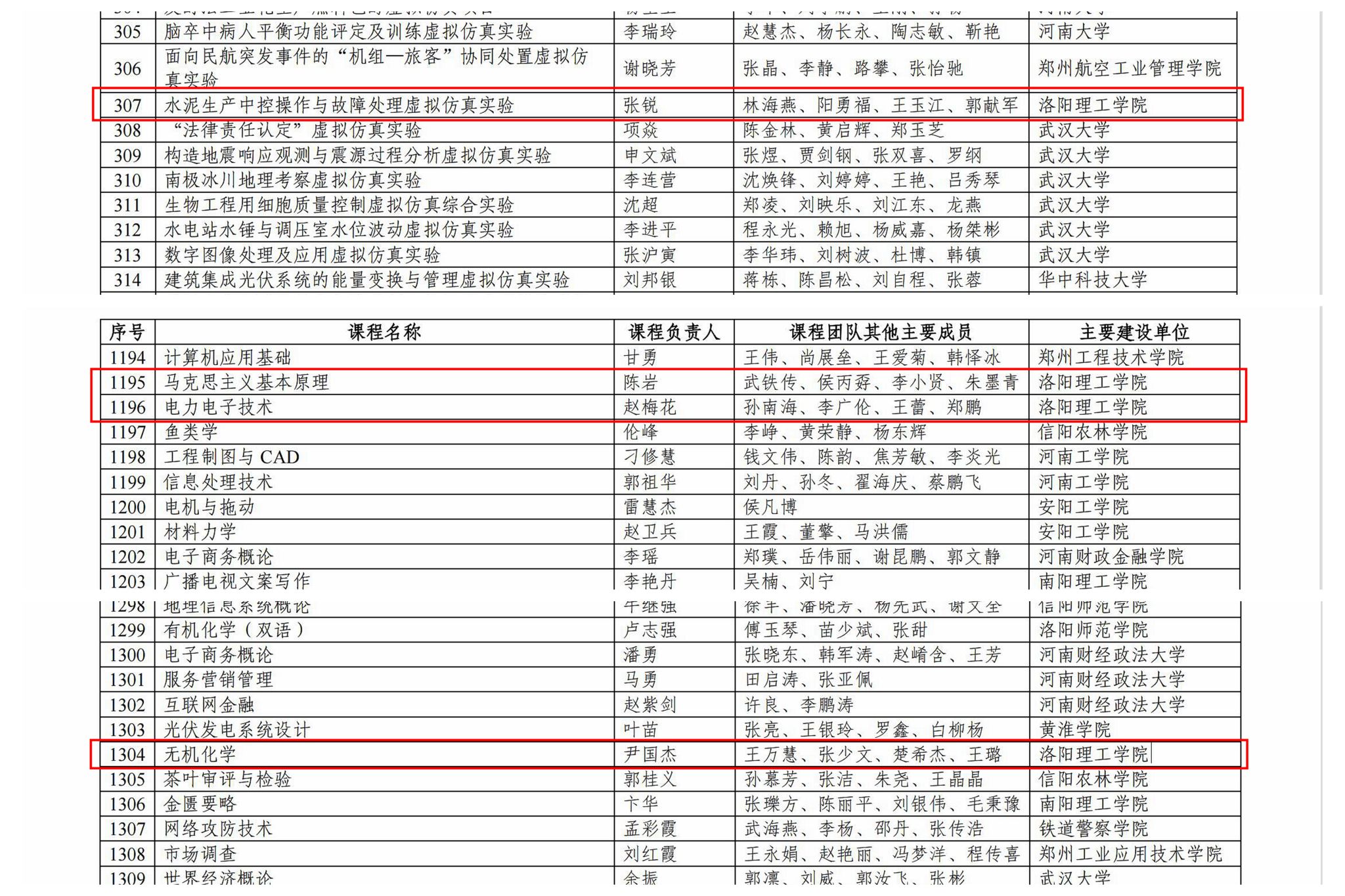 张锐教授负责的《水泥生产中控操作与故障处理虚拟仿真实验》被认定为虚拟仿真实验教学一流课程;陈岩教授负责的《马克思主义基本原理》被认定为线上线下混合式一流课程;赵梅花教授负责的《电力电子技术》被认定为线上线下混合式一流课程;尹国杰教授负责的《无机化学》被认定为线下一流课程。