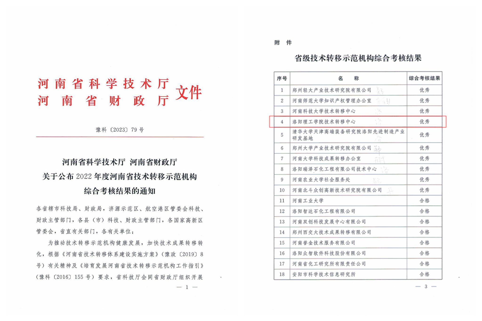 《关于公布2022年度河南省技术转移示范机构综合考核结果的通知》文件及考核结果名单(部分)