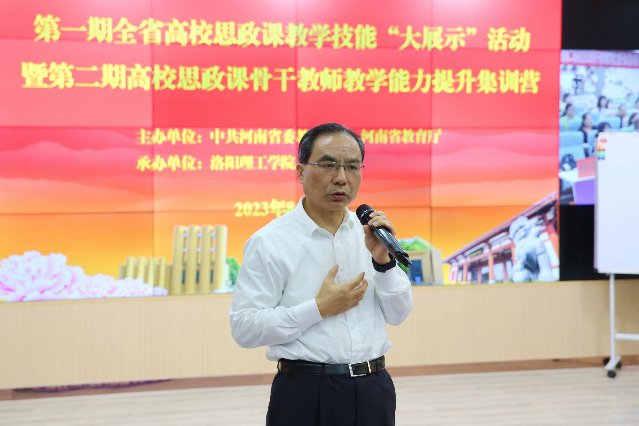 尹洪斌强调,开展此次全省高校思政课教学技能“大展示”活动,对全省高校思政课教师来说,既是展示、又是学习、还是提升,更是成长和发展。希望此次活动能够选拔一批代表河南高校思政课教师教学能力和水平的选手参加全国比赛,展现河南高校思政课教师形象和风采。他希望全体参训学员做到充分演练,用心、倾心学习,在同行间查漏补缺;全体评委要当好“老师”,当好指导员和评论员,敢说、敢评、敢议,做到对工作负责、对全省思政课教师成长负责、对全省思政课教育教学质量负责,确保此次活动见到实效。