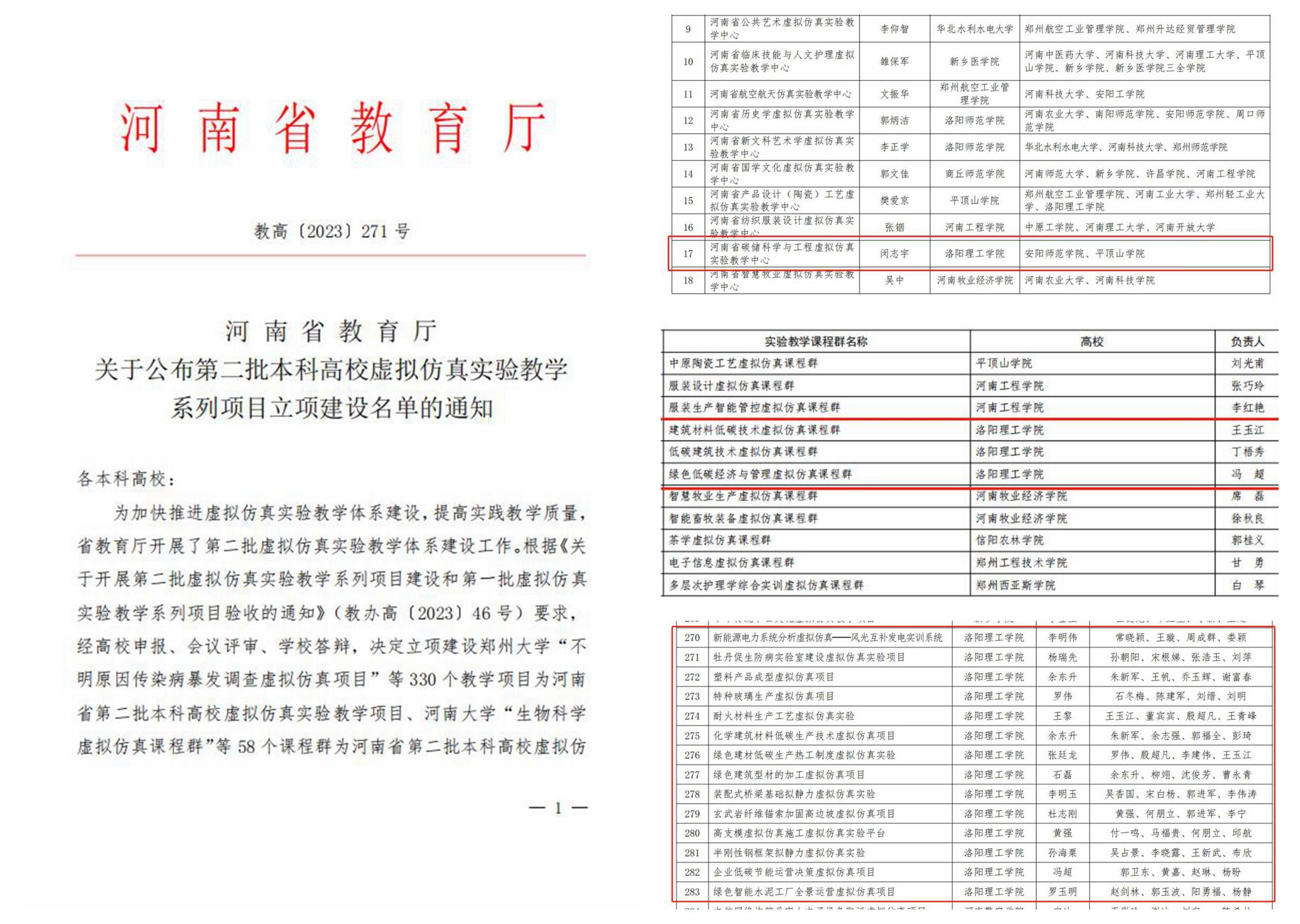 闵志宇教授主持的“碳储科学与工程虚拟仿真实验中心”获批立项河南省虚拟仿真实验教学中心;丁梧秀教授主持的“低碳建筑技术虚拟仿真课程群”、王玉江教授主持的“建筑材料低碳技术虚拟仿真课程群”、冯超教授主持的“绿色低碳经济与管理虚拟仿真课程群”获批立项河南省虚拟仿真实验教学课程群;李明伟教授主持的“新能源电力系统分析虚拟仿真——风光互补发电实训系统”等14个项目获批立项河南省虚拟仿真实验教学项目。