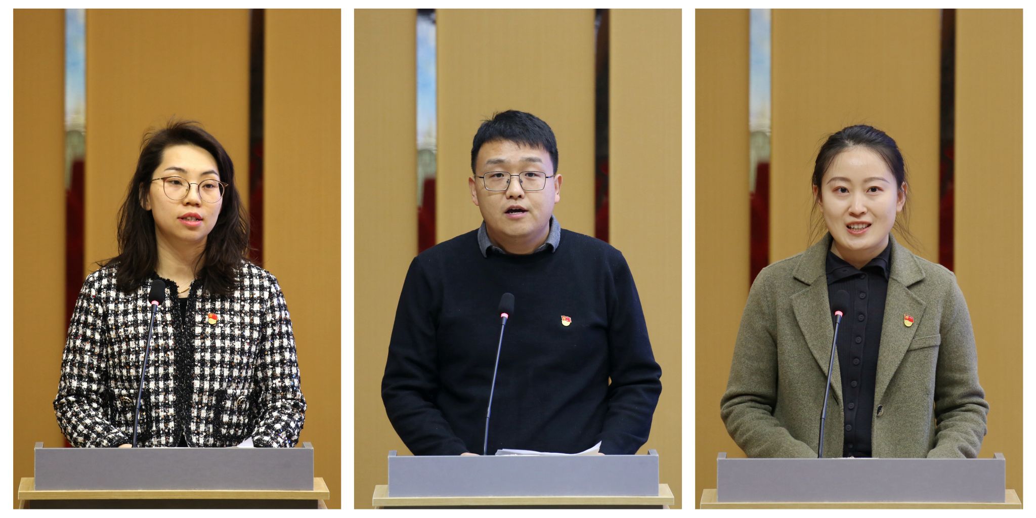 材料科学与工程美高梅娱乐场 党委副书记丁晨(左)、经济与管理美高梅娱乐场 学工办副主任杨盼(中)、土木工程美高梅娱乐场 辅导员李娈启(右)分别作交流发言