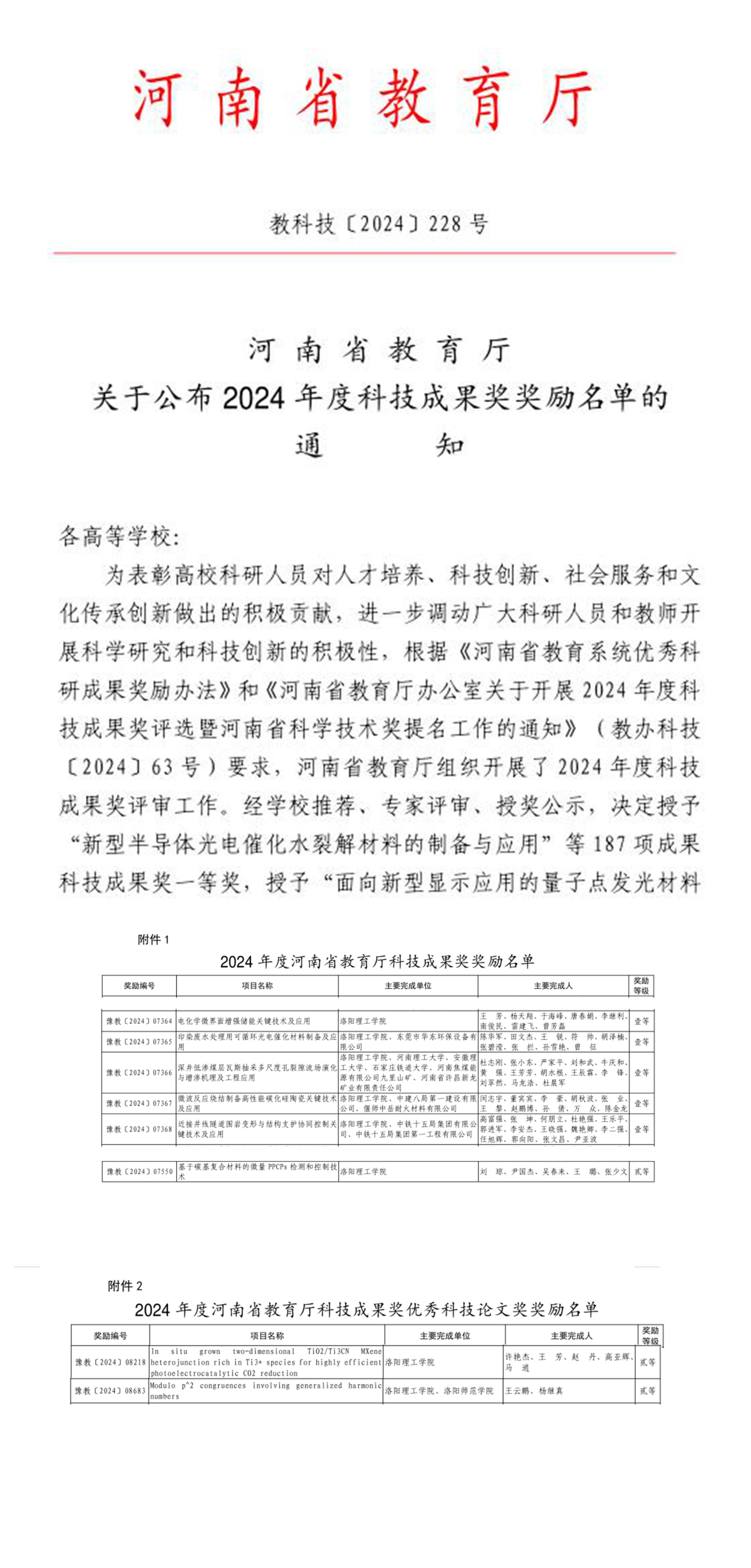 近日,河南省教育厅印发《关于公布2024年度科技成果奖奖励名单的通知》(教科技〔2024〕228号),公布2024年度科技成果奖和优秀科技论文奖获奖名单。美高梅娱乐场