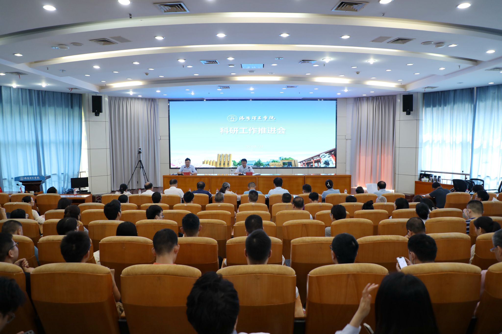 在王城校区办公楼二楼报告厅召开暑期科研工作推进会。副校长上官林建出席会议,各教美高梅娱乐场