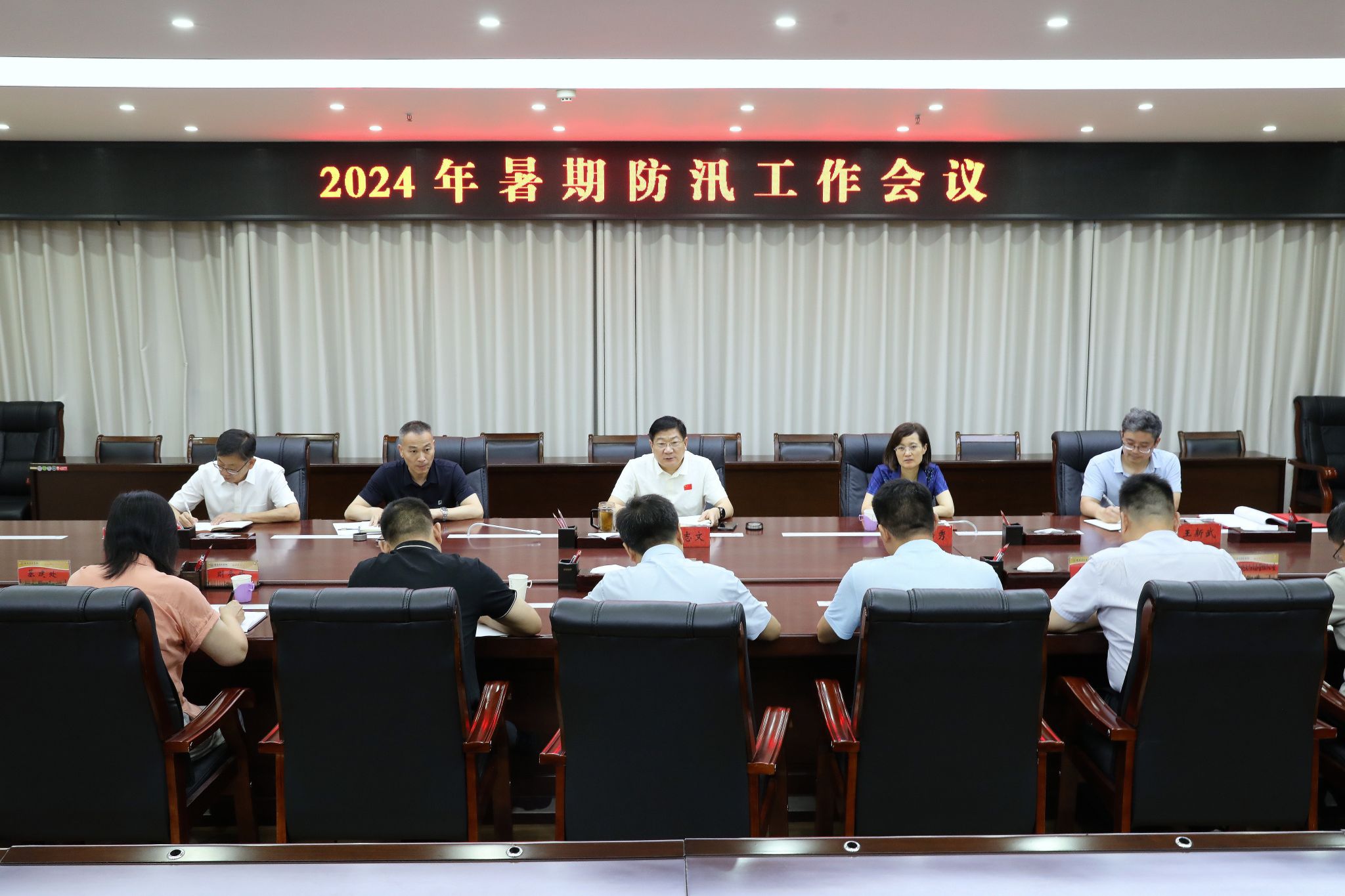 在王城校区办公楼116会议室召开2024年暑期防汛工作会议。校领导卢志文、丁梧秀、曾涛、胡恩立、王新武出席会议,校防汛工作应急指挥部成员单位负责人参加会议。