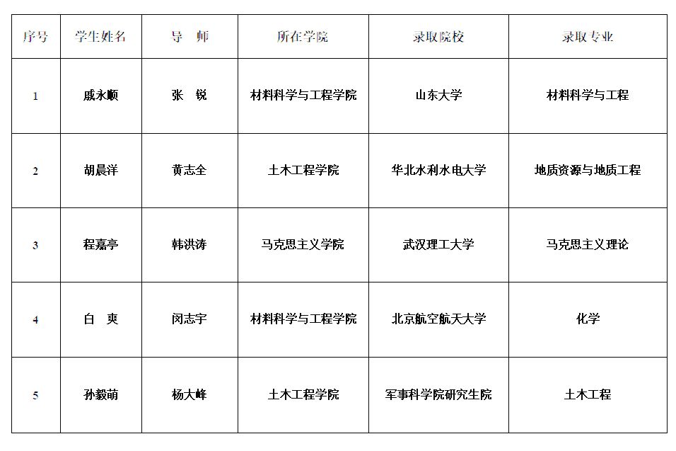 5名联合培养硕士研究生取得博士研究生录取通知书