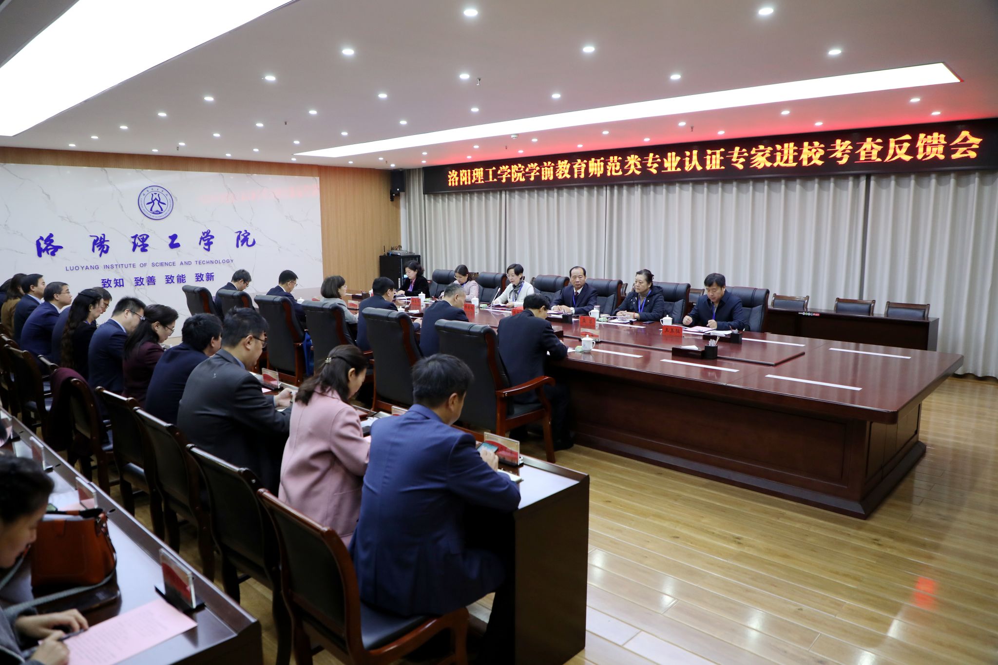 党政班子及学前教育专业教师团队成员参加会议。会议分两个阶段进行,分别由副校长王新武和专家组组长侯莉敏主持。