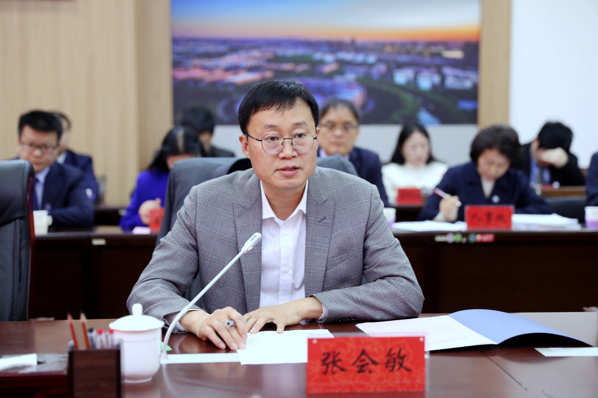河南省教育厅教师工作处副处长张会敏在专家见面会上讲话