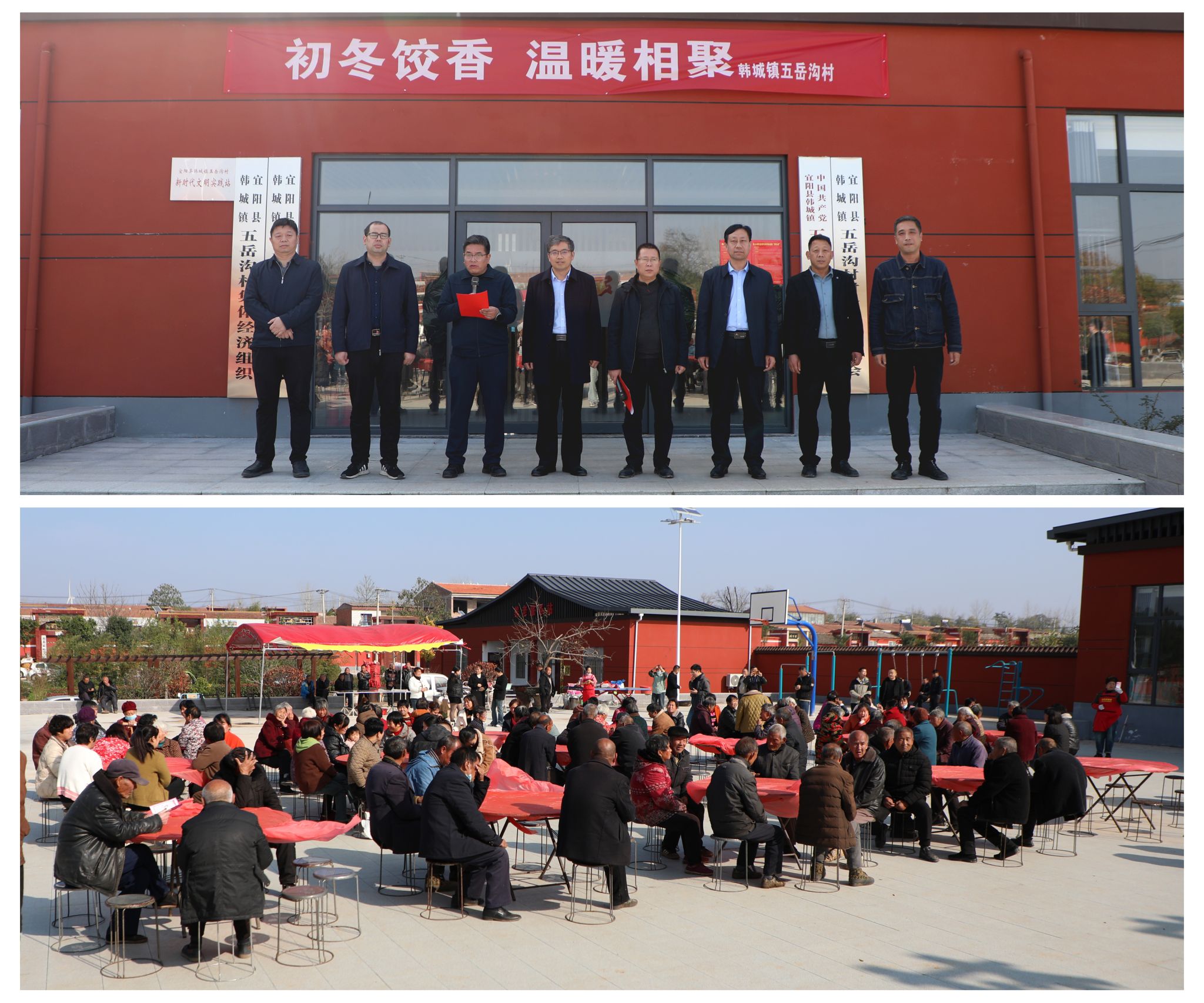 定点帮扶的五岳沟村举办2024年“初冬饺香 温暖相聚”饺子宴,邀请全村老人欢聚一堂,品尝美味水饺,弘扬敬老文化。副校长王新武,宜阳县韩城镇镇长田振民、镇党委副书记王宏伟参加活动。
