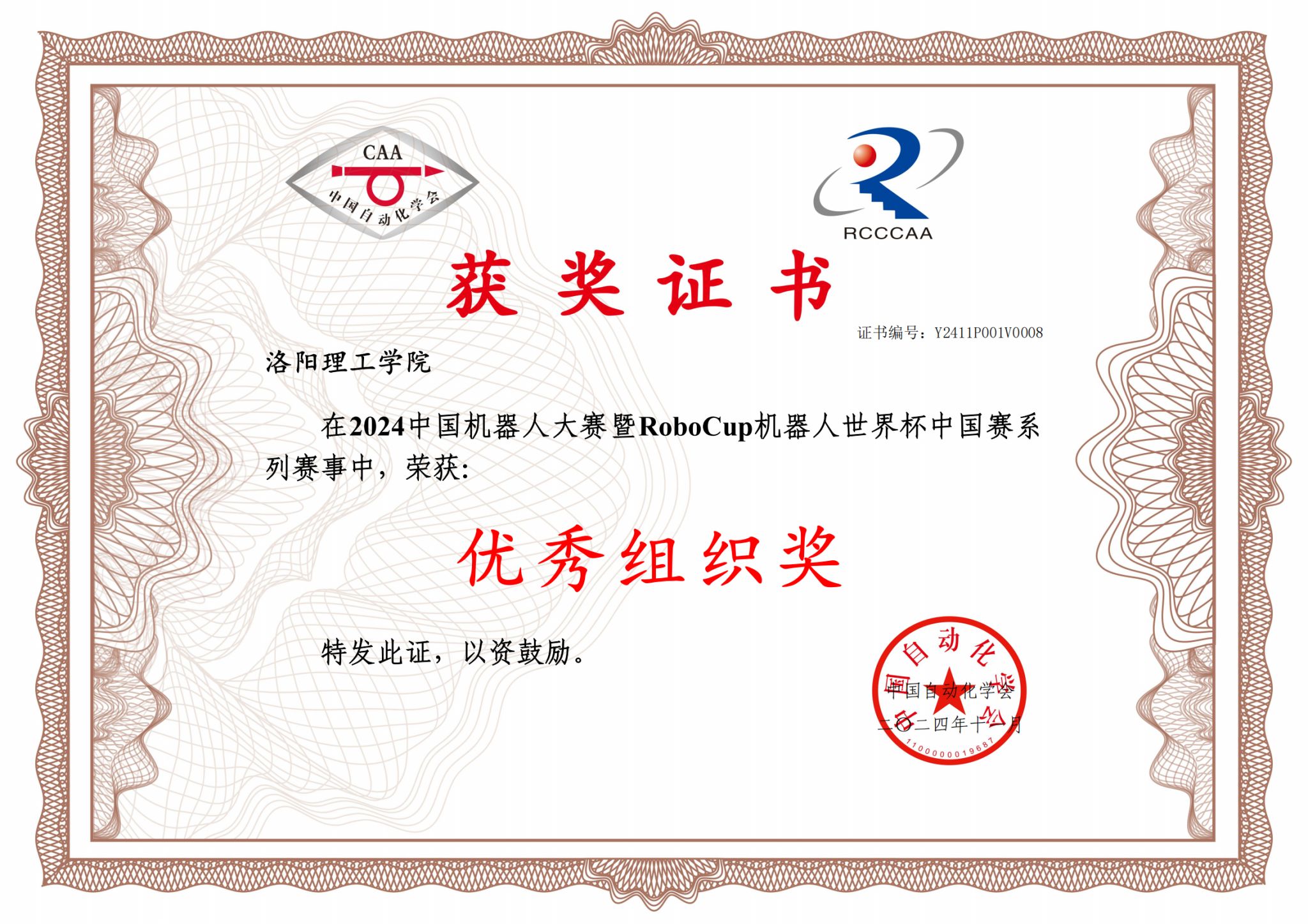 荣获2024中国机器人大赛暨RoboCup机器人世界杯中国赛系列赛事优秀组织奖,并受到中国自动化学会给予的高度评价。