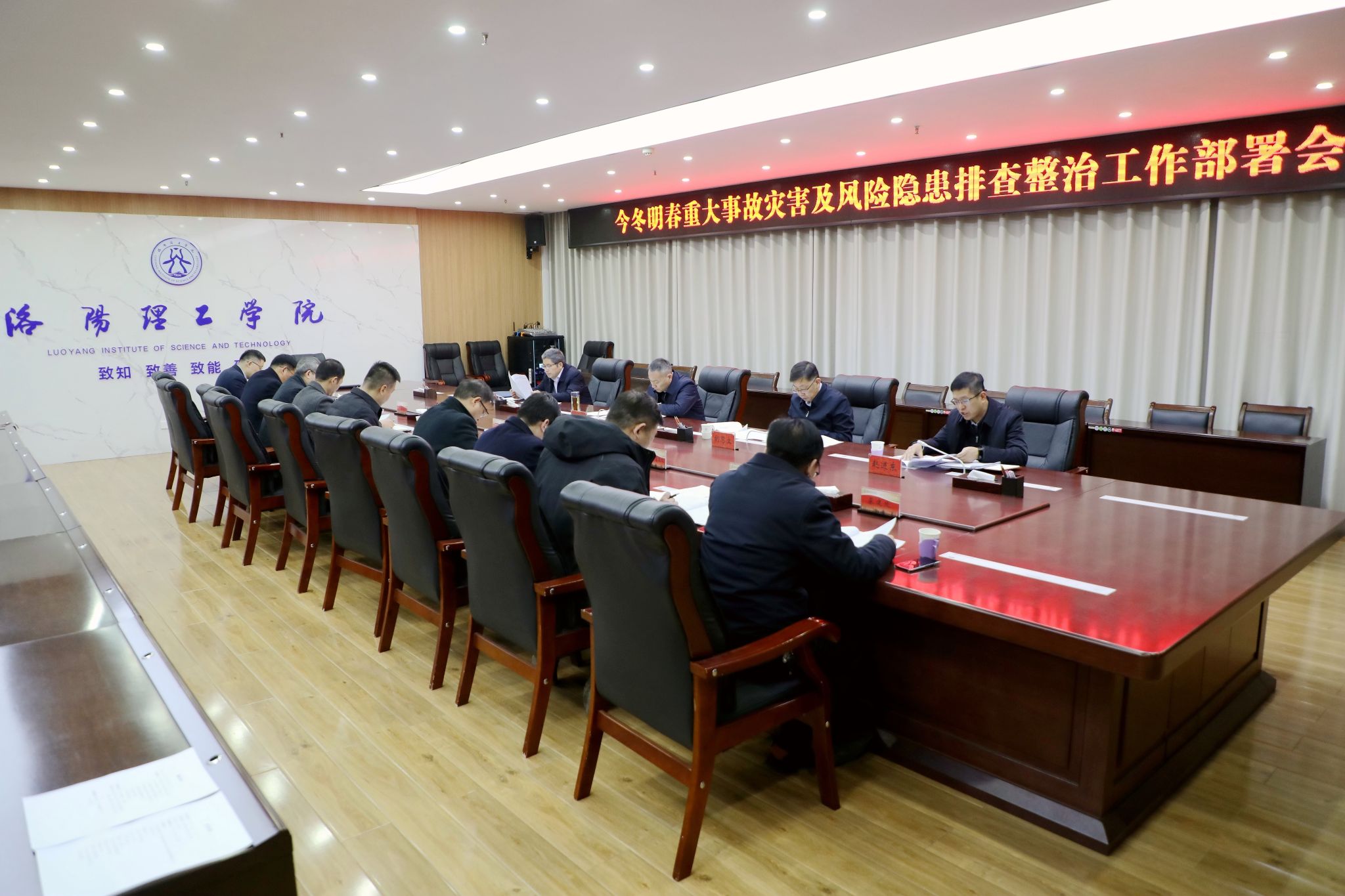 在王城校区办公楼116会议室召开今冬明春重大事故灾害及风险隐患排查整治工作部署会。党委副书记、工会主席曾涛,党委副书记胡恩立,副校长王新武出席会议,党委办公室、学生工作处、教务处、人事处、国有资产管理处、离退休工作处、保卫处、后勤保障处、基建处等部门负责人参加会议。会议由王新武主持。