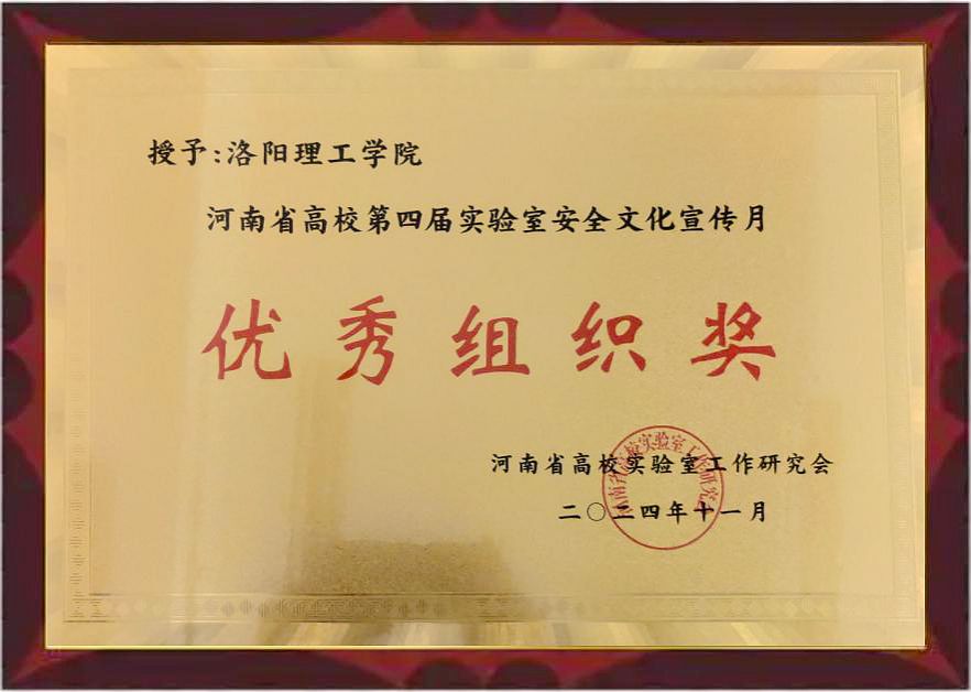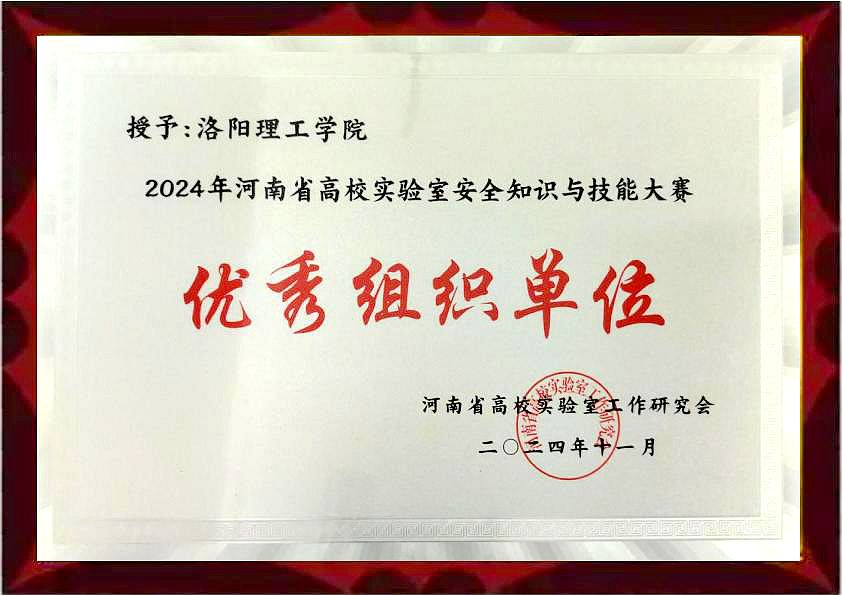 荣获河南省高校第四届实验室安全文化宣传月优秀组织奖和2024年河南省高校实验室安全知识与技能大赛优秀组织单位。这是美高梅娱乐场