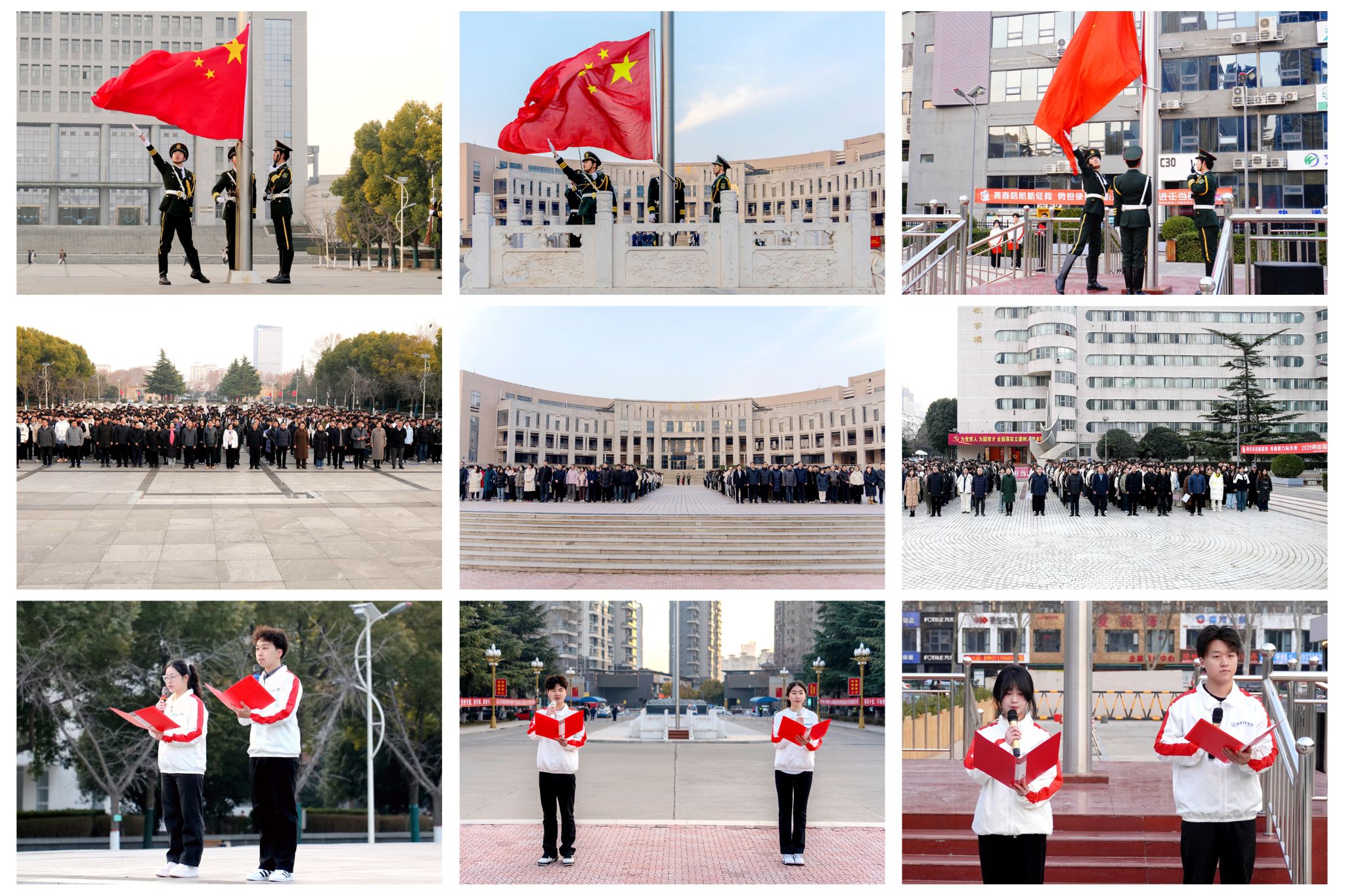2月24日,新学期升国旗仪式暨“国旗下的演讲”活动在美高梅娱乐场 王城、开元、九都三个校区同时举行。校领导丁梧秀、胡恩立、刘楠、黄志全、韩洪涛、王新武、上官林建,相关职能部门负责人及各二级美高梅娱乐场 师生代表共计3000余人参加升国旗仪式。